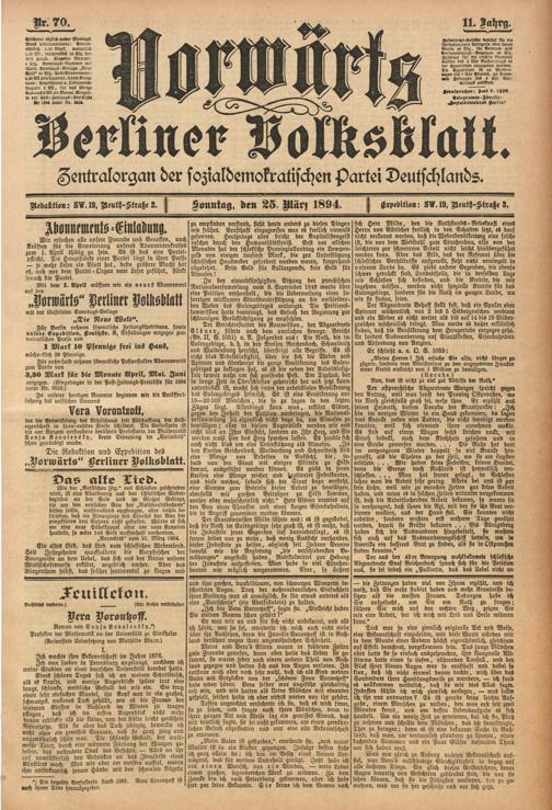 Vorwärts : Berliner Volksblatt ; das Abendblatt der Hauptstadt Deutschlands